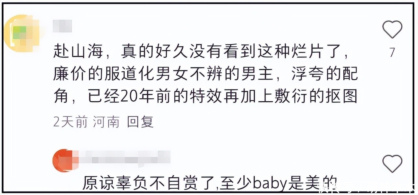 核心要素全扑,古装剧的周边元素,《赴山海》也没有一个拿得出手。颜值这一块,成毅被吐槽馒化,脸部肿了一大圈,其他几个配角也是面部崎岖,完全无法吸引人。当然,男二还是有些小出圈,但一部分也有赖于妆造,有网友表示,放在其他剧里也就普通水平,却硬生生被衬托得俊俏了。